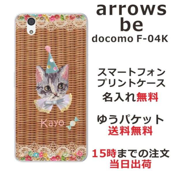 arrows Be F-04K ケース アローズBe カバー らふら 名入れ 籐 猫白