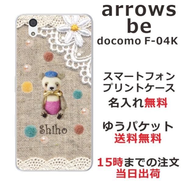arrows Be F-04K ケース アローズBe カバー らふら 名入れ コットンレース風クマ