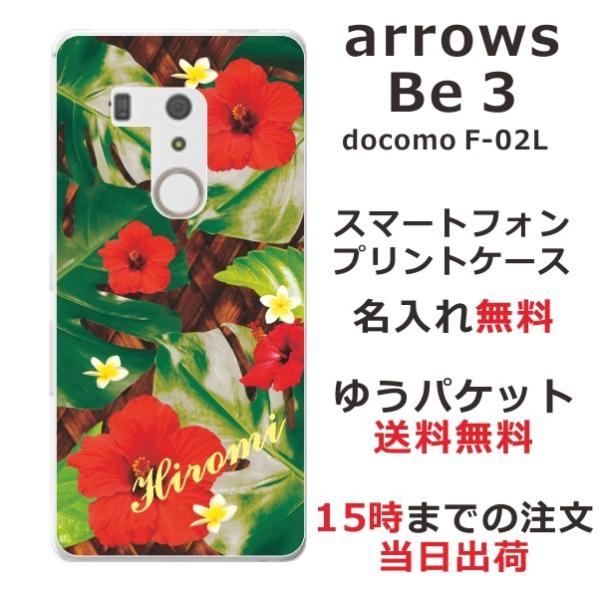 arrows Be3 ケース F-02L アローズBe3 カバー らふら 名入れ ハワイアン ハイビスカス