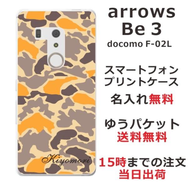 arrows Be3 ケース F-02L アローズBe3 カバー らふら 名入れ 迷彩 オレンジ