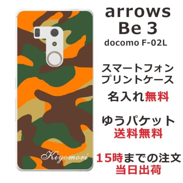 arrows Be3 ケース F-02L アローズBe3 カバー らふら 名入れ 迷彩 オレンジ