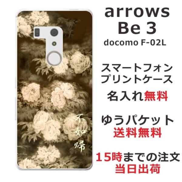 arrows Be3 ケース F-02L アローズBe3 カバー らふら 名入れ 和柄 セピア牡丹