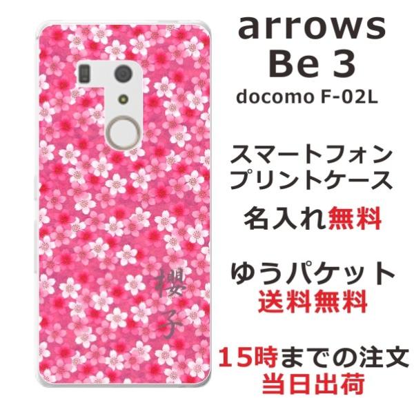 arrows Be3 ケース F-02L アローズBe3 カバー らふら 名入れ 和柄 桜ピンク