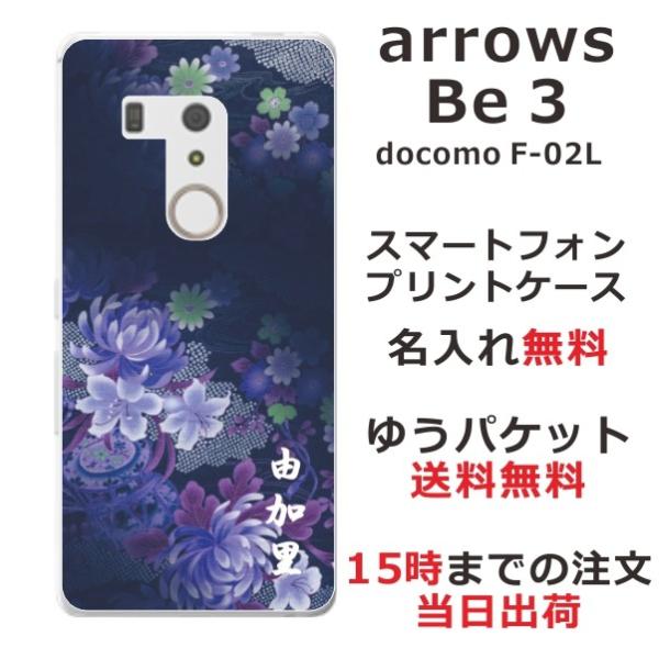 arrows Be3 ケース F-02L アローズBe3 カバー らふら 名入れ 和柄 和花青紫グラデ