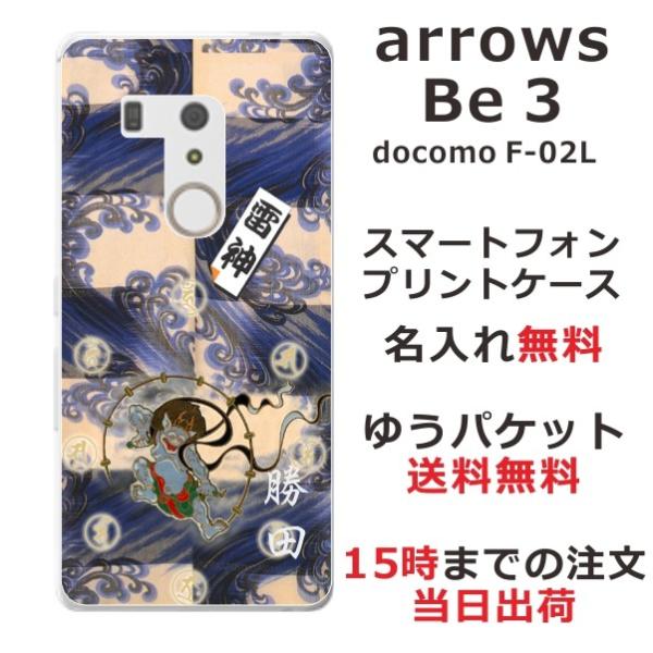 arrows Be3 ケース F-02L アローズBe3 カバー らふら 名入れ 和柄 雷神