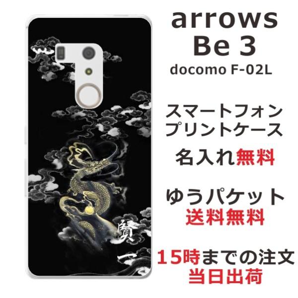 arrows Be3 ケース F-02L アローズBe3 カバー らふら 名入れ 和柄 漆黒雲海龍