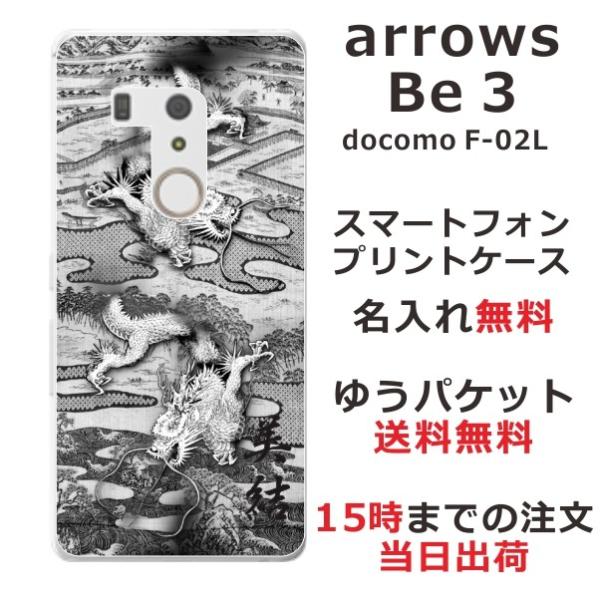 arrows Be3 ケース F-02L アローズBe3 カバー らふら 名入れ 和柄 水墨双龍