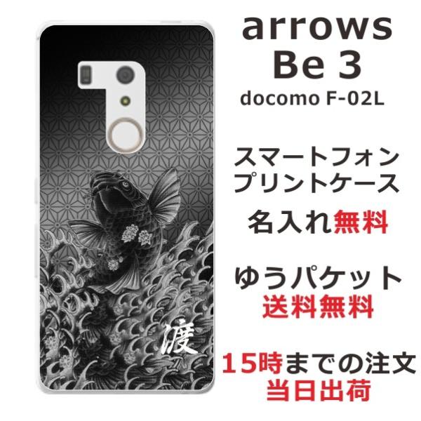 arrows Be3 ケース F-02L アローズBe3 カバー らふら 名入れ 和柄 昇り鯉黒