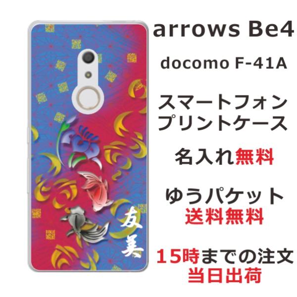 arrows Be4 ケース F-41A アローズBe4 カバー らふら 名入れ 和柄 菖蒲黒赤金魚