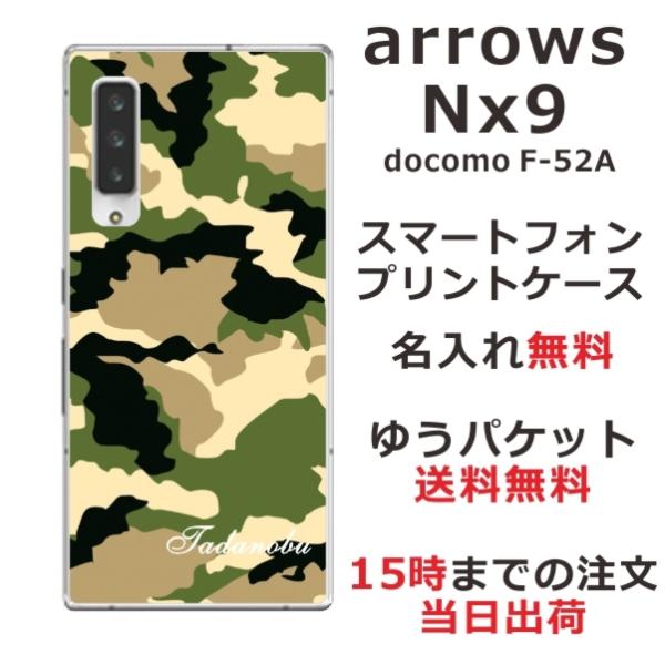 arrows NX9 ケース F-52A アローズNX9 カバー らふら 名入れ 迷彩 グリーン