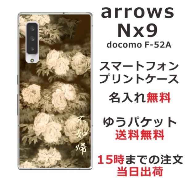 arrows NX9 ケース F-52A アローズNX9 カバー らふら 名入れ 和柄 セピア牡丹