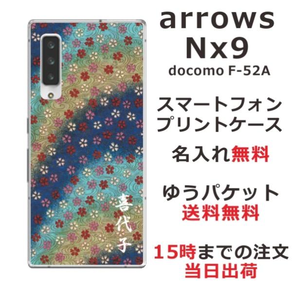 arrows NX9 ケース F-52A アローズNX9 カバー らふら 名入れ 和柄 和小花ブルーグラデ