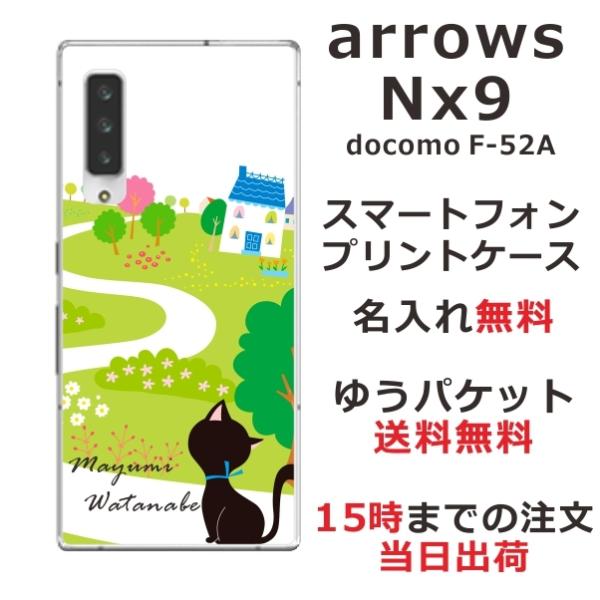 arrows NX9 ケース F-52A アローズNX9 カバー らふら 名入れ 黒猫 お散歩