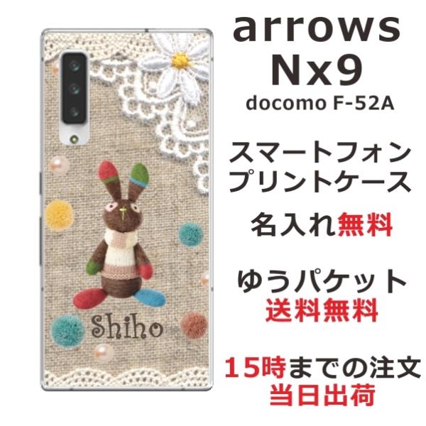 arrows NX9 ケース F-52A アローズNX9 カバー らふら 名入れ コットンレース風 うさぎ
