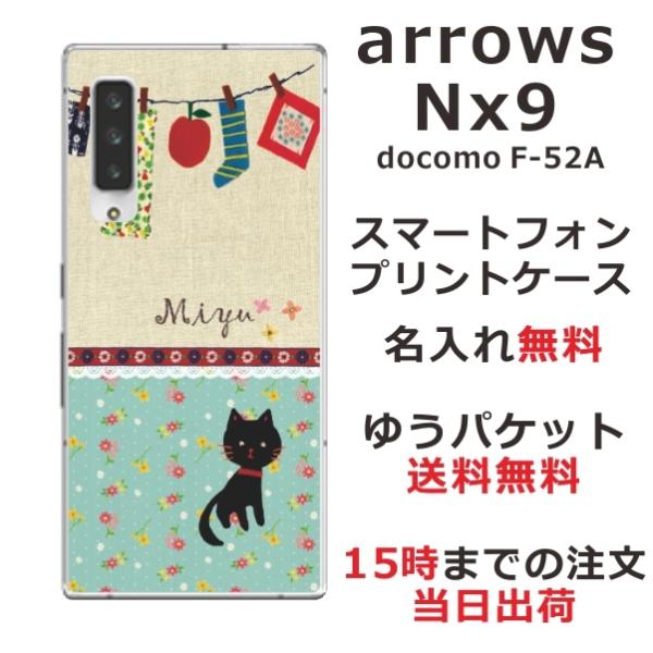 arrows NX9 ケース F-52A アローズNX9 カバー らふら 名入れ 黒猫 洗濯物