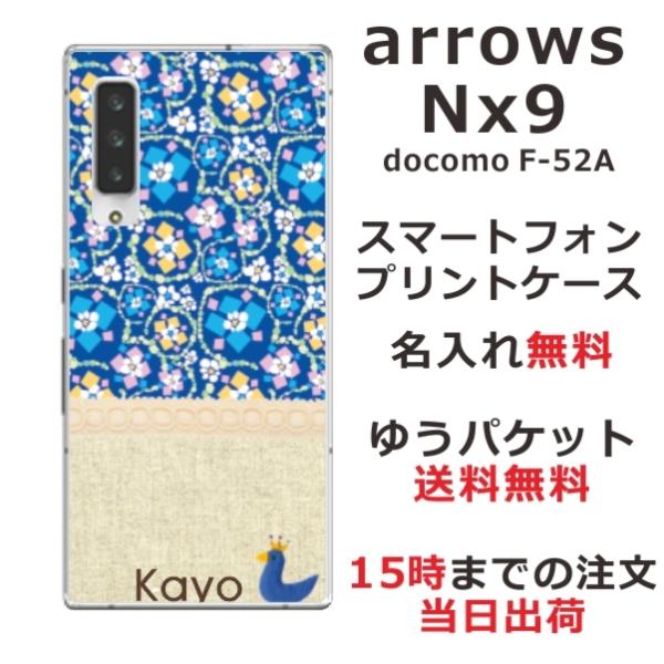 arrows NX9 ケース F-52A アローズNX9 カバー らふら 名入れ 北欧デザイン フラワー ブルー