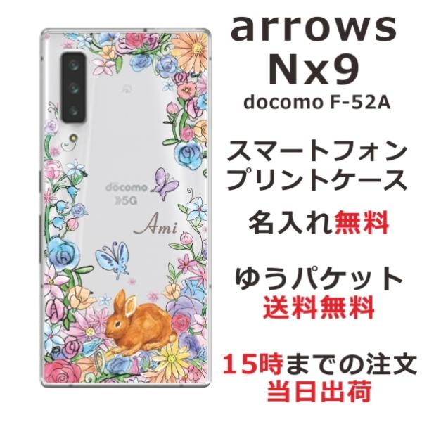 arrows NX9 ケース F-52A アローズNX9 カバー らふら 名入れ お花畑 ウサギ