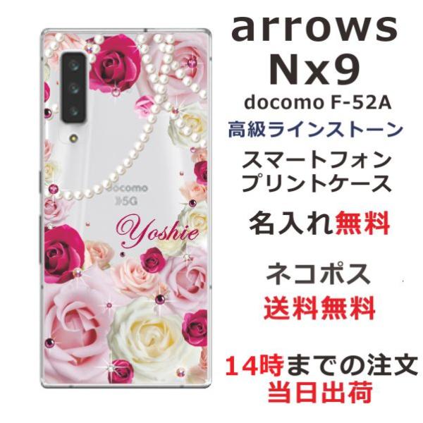 arrows NX9 ケース F-52A アローズNX9 カバー ラインストーン かわいい フラワー 花柄 らふら 名入れ 押し花風 ローズダークピンク