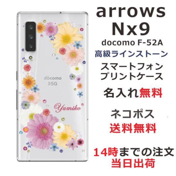 arrows NX9 ケース F-52A アローズNX9 カバー ラインストーン かわいい フラワー 花柄 らふら 名入れ 押し花風 ポップフラワー