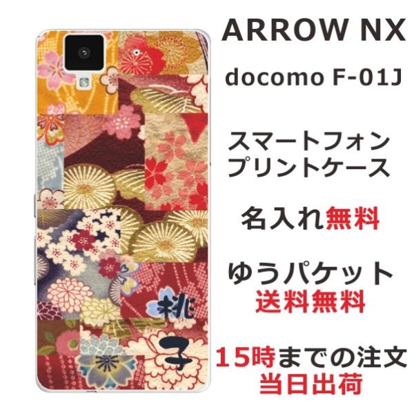 arrows NX ケース F-01J アローズNX カバー らふら 名入れ 和柄 着物パッチワークピンク