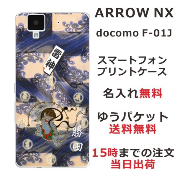 arrows NX ケース F-01J アローズNX カバー らふら 名入れ 和柄 雷神