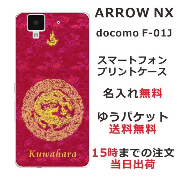 arrows NX ケース F-01J アローズNX カバー らふら 名入れ 和柄 円龍赤