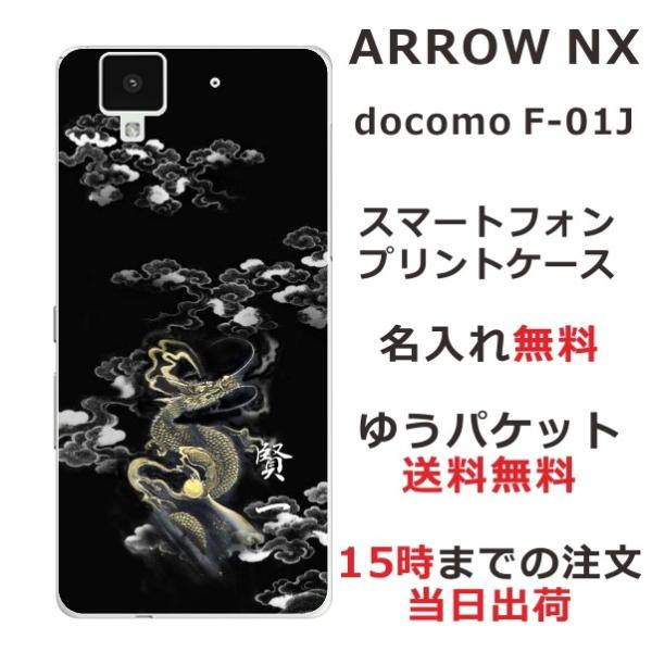 arrows NX ケース F-01J アローズNX カバー らふら 名入れ 和柄 漆黒雲海龍