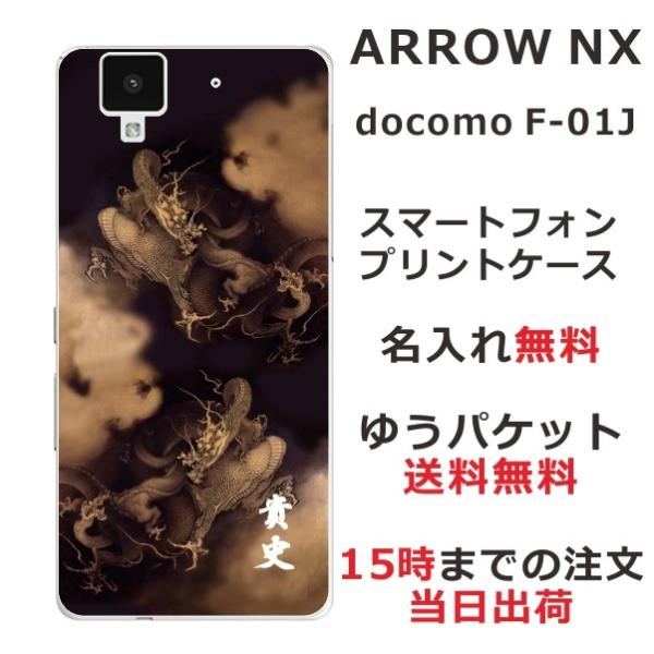 arrows NX ケース F-01J アローズNX カバー らふら 名入れ 和柄 昇龍セピア