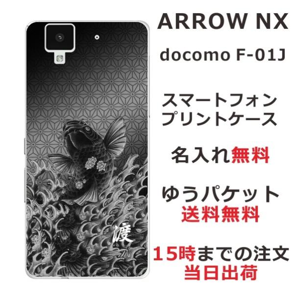 arrows NX ケース F-01J アローズNX カバー らふら 名入れ 和柄 昇り鯉黒