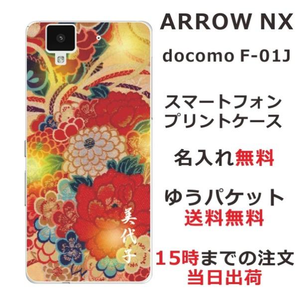 arrows NX ケース F-01J アローズNX カバー らふら 名入れ 和柄 着物和花牡丹