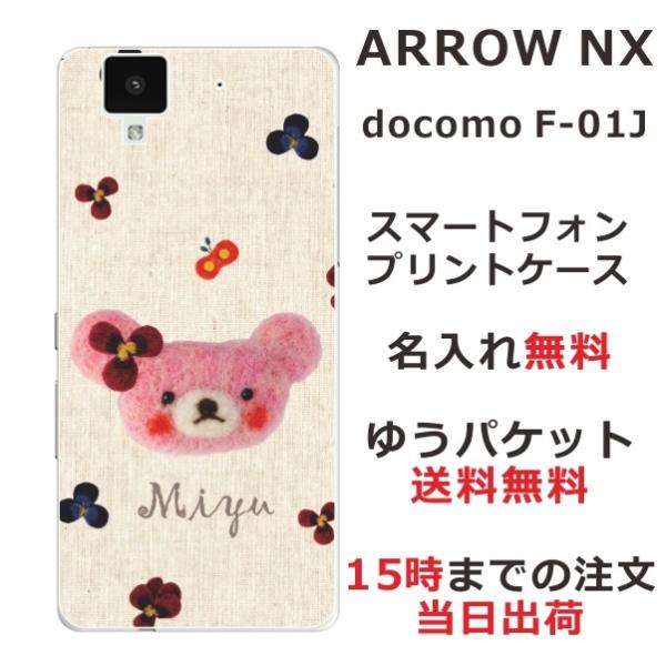 arrows NX ケース F-01J アローズNX カバー らふら 名入れ フェルト風プリントベア