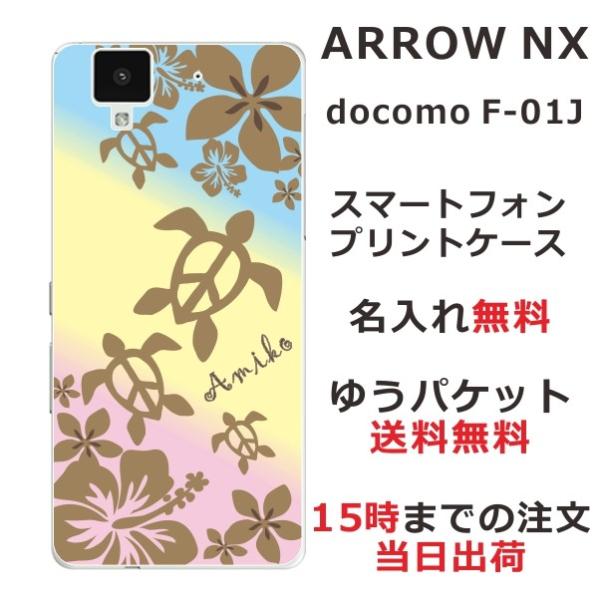 arrows NX ケース F-01J アローズNX カバー らふら 名入れ ハワイアン グラデーションホヌ