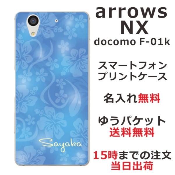 arrows NX ケース F-01K アローズNX カバー らふら 名入れ ハイビスカスブルー