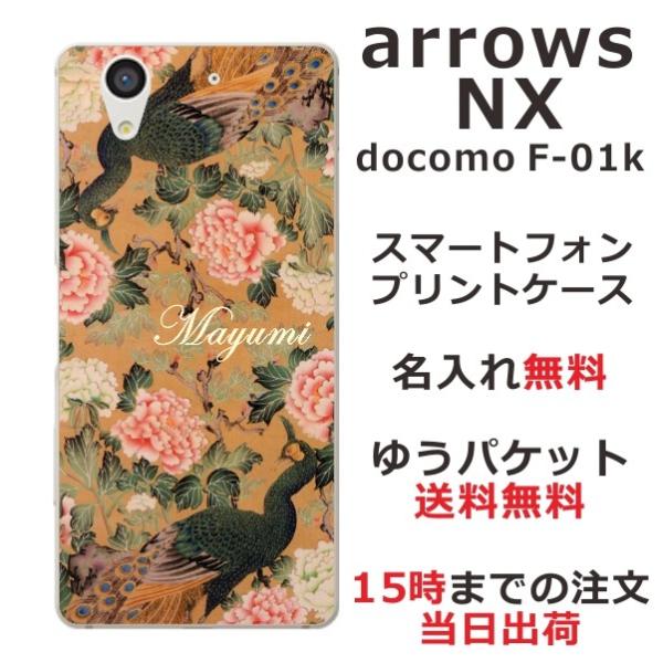 arrows NX ケース F-01K アローズNX カバー らふら 名入れ 和柄 孔雀牡丹