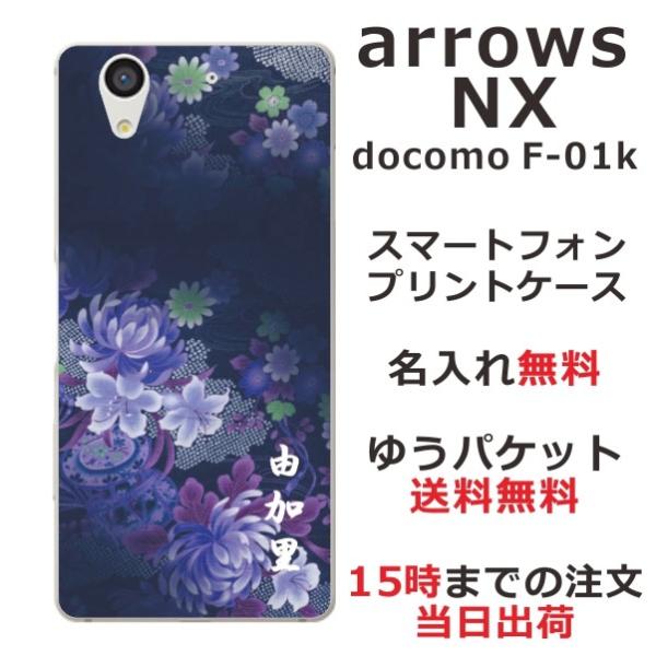 arrows NX ケース F-01K アローズNX カバー らふら 名入れ 和柄 和花青紫グラデ