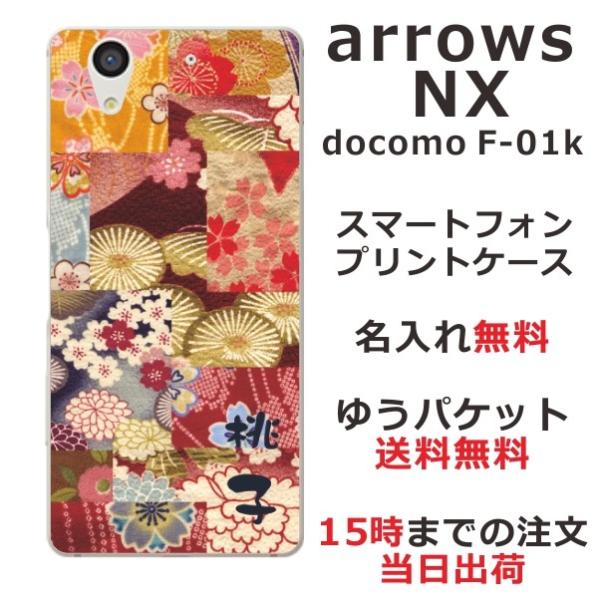 arrows NX ケース F-01K アローズNX カバー らふら 名入れ 和柄 着物パッチワークピンク