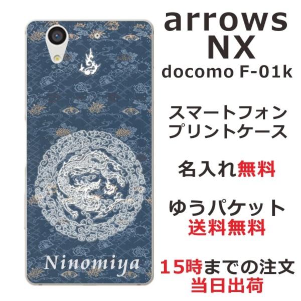 arrows NX ケース F-01K アローズNX カバー らふら 名入れ 和柄 円龍深青
