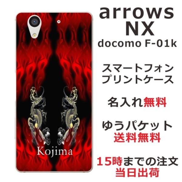 arrows NX ケース F-01K アローズNX カバー らふら 名入れ 和柄 炎闇双龍