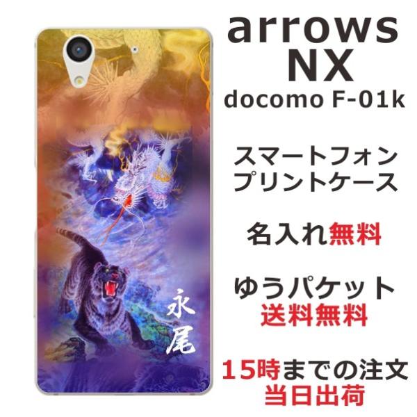 arrows NX ケース F-01K アローズNX カバー らふら 名入れ 和柄 龍虎蒼橙