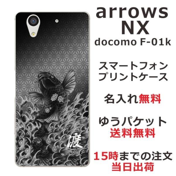 arrows NX ケース F-01K アローズNX カバー らふら 名入れ 和柄 昇り鯉黒