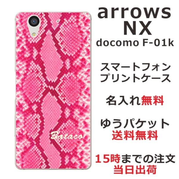 arrows NX ケース F-01K アローズNX カバー らふら 名入れ シンプルデザイン へび柄 ピンク