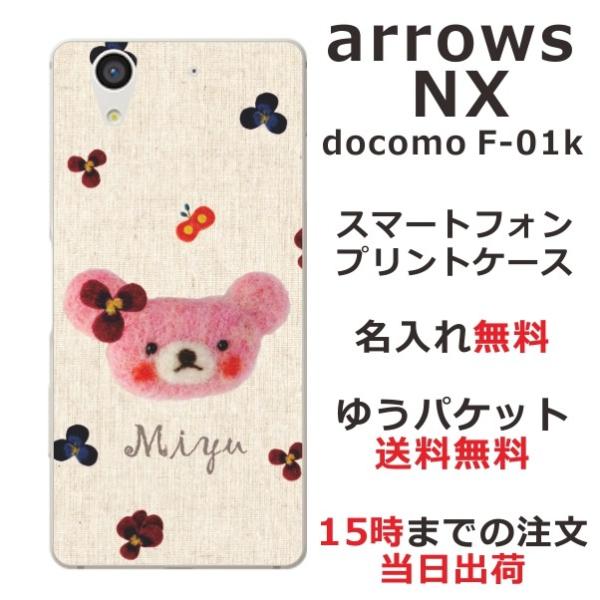 arrows NX ケース F-01K アローズNX カバー らふら 名入れ フェルト風プリントベア
