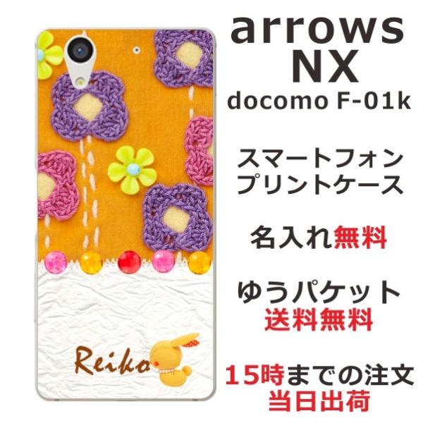 arrows NX ケース F-01K アローズNX カバー らふら 名入れ キルトフラワーオレンジ