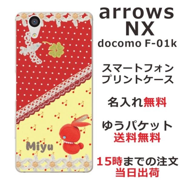 arrows NX ケース F-01K アローズNX カバー らふら 名入れ 赤ウサギ 白い鳥