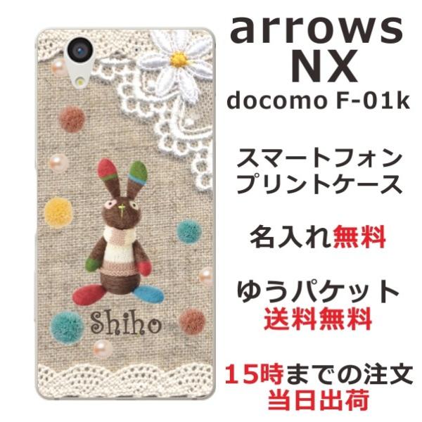 arrows NX ケース F-01K アローズNX カバー らふら 名入れ コットンレース風 うさぎ