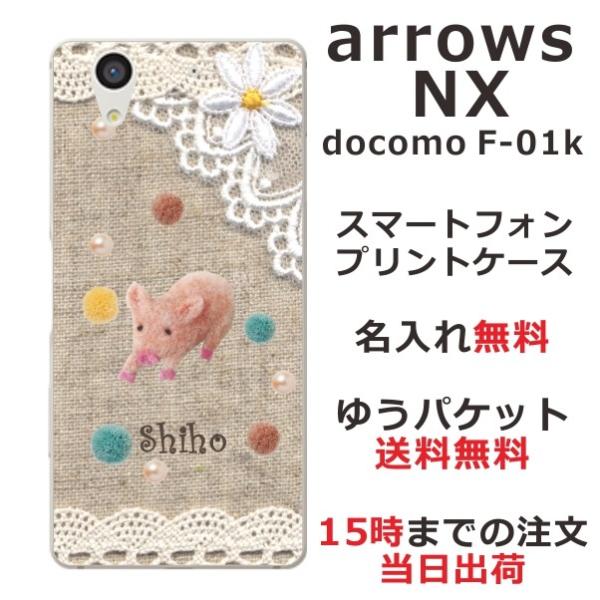 arrows NX ケース F-01K アローズNX カバー らふら 名入れ コットンレース風 ブタ