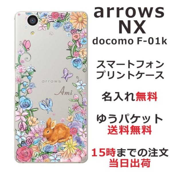 arrows NX ケース F-01K アローズNX カバー らふら 名入れ お花畑 ウサギ