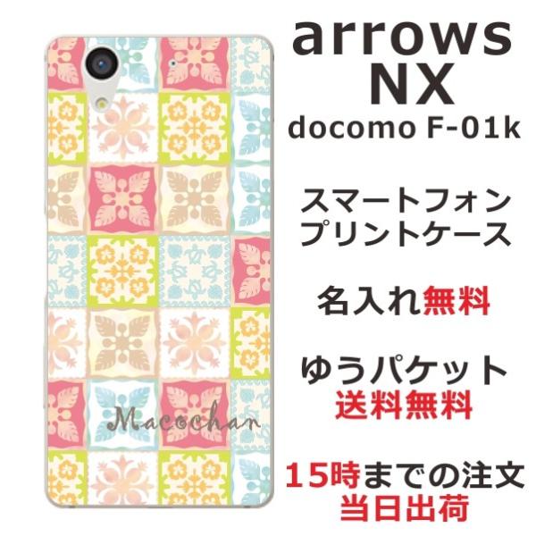 arrows NX ケース F-01K アローズNX カバー らふら 名入れ ハワイアン ハワイアン キルト