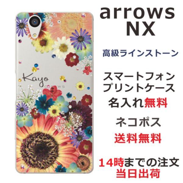 arrows NX ケース F-01K アローズNX カバー ラインストーン かわいい フラワー 花柄 らふら 名入れ 押し花風 フラワーアレンジカラフル