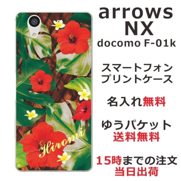 arrows NX ケース F-01K アローズNX カバー らふら 名入れ ハワイアン ハイビスカス